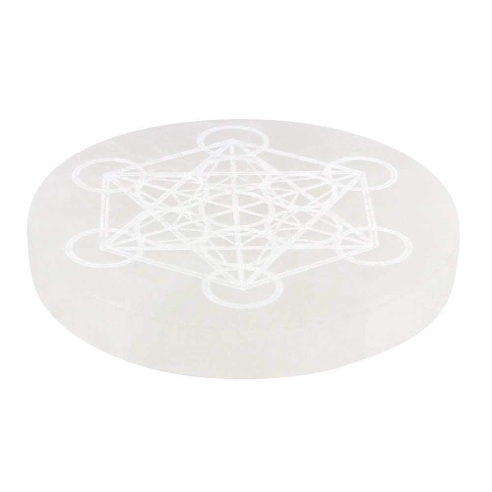 Selenite Metatron’s Cube Crystal Charging Plate